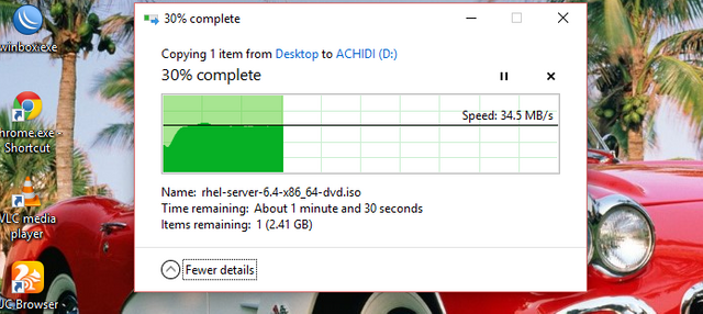 A screenshot of file transfer from my desktop to my external hdd. Notice the initial slow start and subsequent constant speed.
