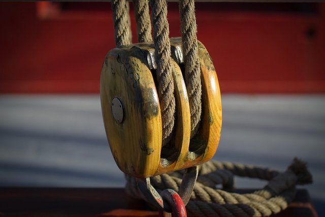 The last member of the simple machines is the pulley. However, it is by no means the least. Even though in basic sketches it is depicted as a rope wrapped around a grooved wheel, Pulleys have pretty much been around as early as the renaissance age, and are basically used to transmit power by means of a belt, chain or rope. There's no point straining your back by trying to lift something heavy when there's a perfect conditioned pulley lying around. With a sturdy attachment and a strong rope, you're good to go.