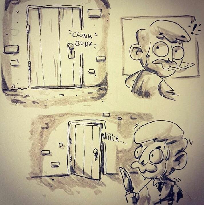Saya selalu pandai dalam hal itu. Saya sudah mencapai target saya 4 kali, dan pada akhir lemparan ke-7, guncangan ke-5 menyebabkan salah satu jeruji terbang. Pintu darurat saya terbuka. Saat bersiap-siap untuk mencapai bukaan, saya mendengar langkah kaki di belakang pintu. Seseorang datang! Tentunya orang gila Henry datang untuk melanjutkan pekerjaannya yang mengerikan. Suara logam berat bergema di kunci. Dia akan masuk! Tapi aku sudah dipersenjatai sekarang. Aku bisa berdiri padanya, tapi aku harus cepat-cepat! Jangan memberinya waktu untuk bertindak! Haruskah saya menghadapinya (A), dimana tidak untuk meminta istirahat saya dan lari melalui cahaya langit (B)?