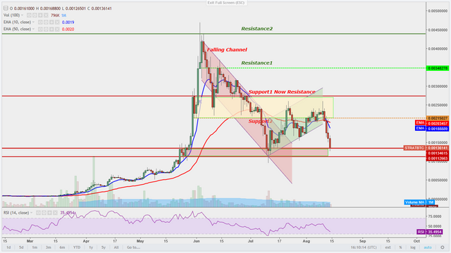 Stratis(STRAT/BTC) Update 14/08/2017: Testing Important Levels Of Support!!!