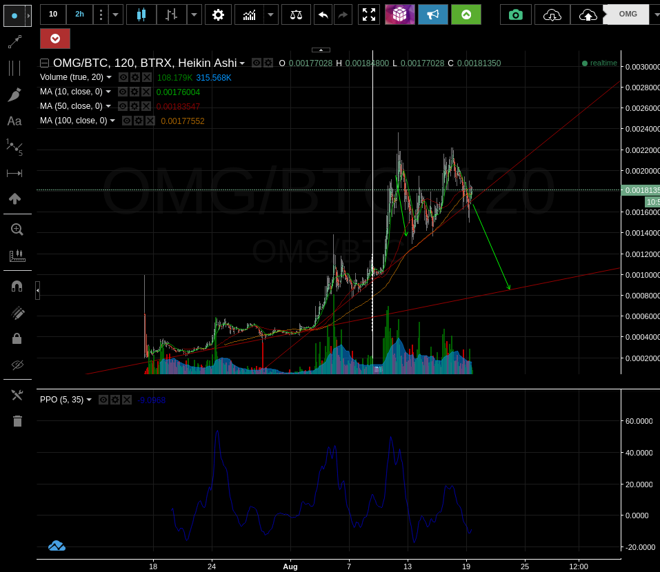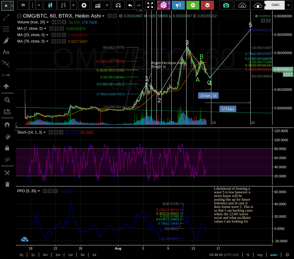 Elliot wave appears to be a technique to help predict exits and the length and strength of a trend. I think elliot waves should be used for hype cycles. I think if no more news about OMG comes out we could correct down to 9000 sats. However there is the possibilty that we could catch and consolidate on the 14000