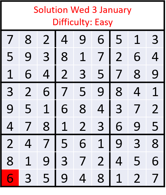 Sudoku Challenge - Wed 10 January - Difficulty: Easy