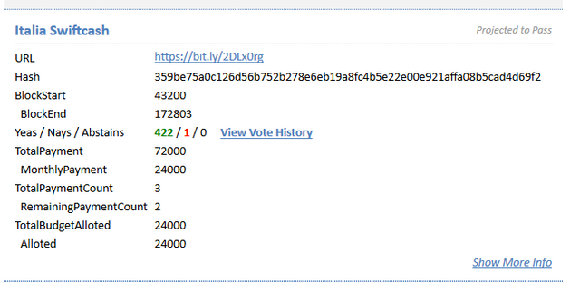 Andiamo intanto a vedere l'elenco di proposte attualmente al vaglio della comunità: le puoi trovare QUI, con oppure andando a scorrerle sul wallet -> console tramite comando mnbudget show.