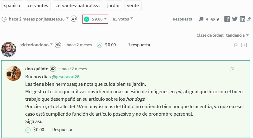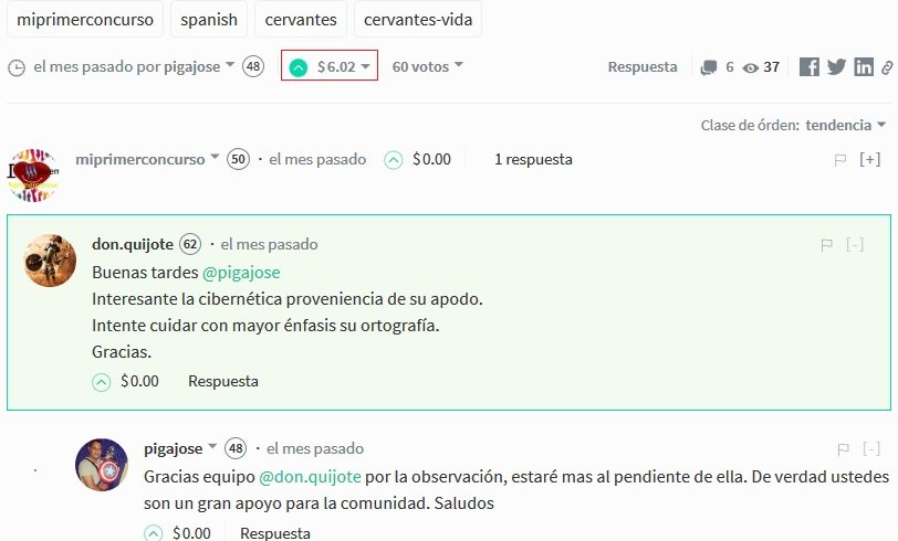 Finally, you will see some samples of how @don.quijote and the rest of the curator accounts, in their exercise of daily curation, serve as a direct bridge for the vote of @cervantes account.