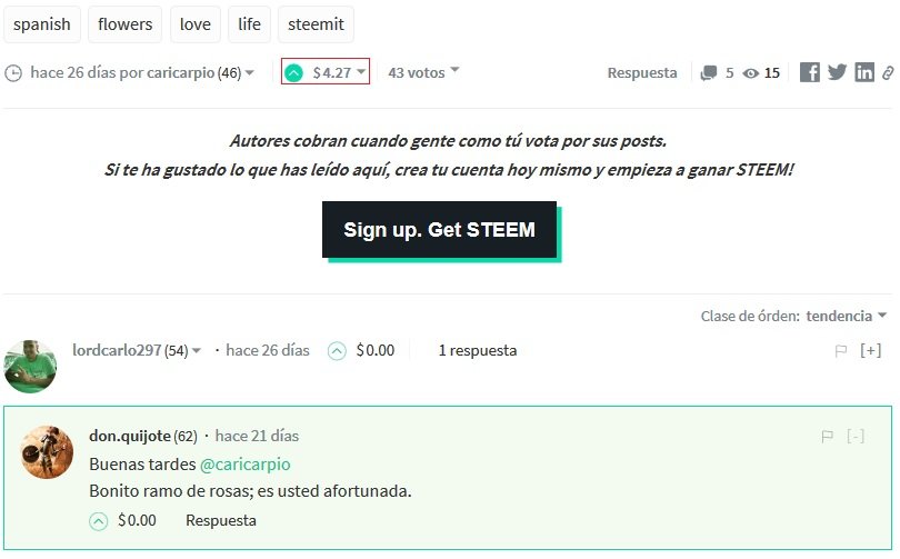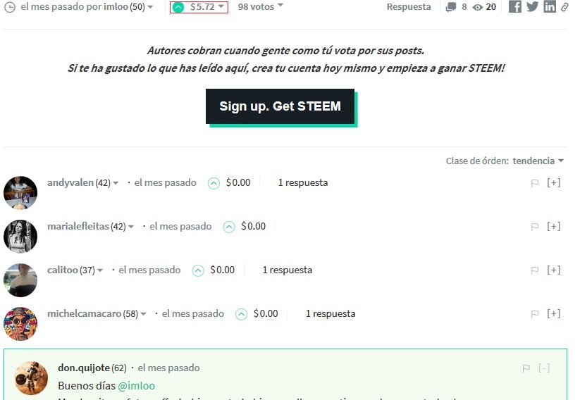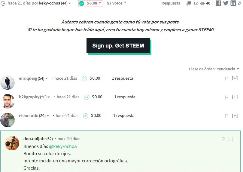 In almost all the screenshots that I bring you, you can see the personal comment of @don.quijote next to the clicked upvote arrow; I clarify that in those screenshots where the comment is not seen is not because it does not exist but because, given the amount of comments that were above mine, the screenshot did not cover enough below so that the vote and the comment couldn't be displayed in the same shot.
