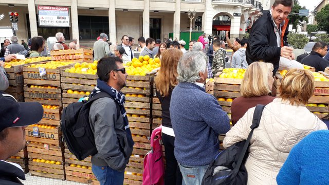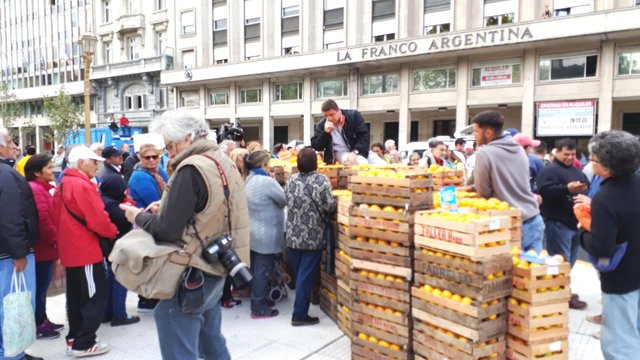 Para no entrar en temas tan escabrosos como la política, les voy a comentar que ésta no es la primera vez que los productores protestan de esa manera, regalando al pueblo kilos y kilos de frutas, en éste caso, cuando pasé por allí solamente tenían las mandarinas y naranjas, pero también llevaron 20.000 kilos de manzanas y peras, es algo que me llama mucho la atención, en mi vida había visto ésta forma de protesta, donde en vez de perjudicar al pueblo, los benefician regalando frutas.