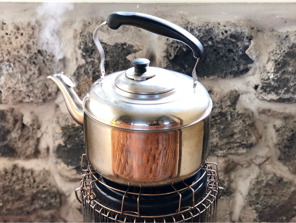 그 위 연기가 풀풀 피어 오르는 주전자-
