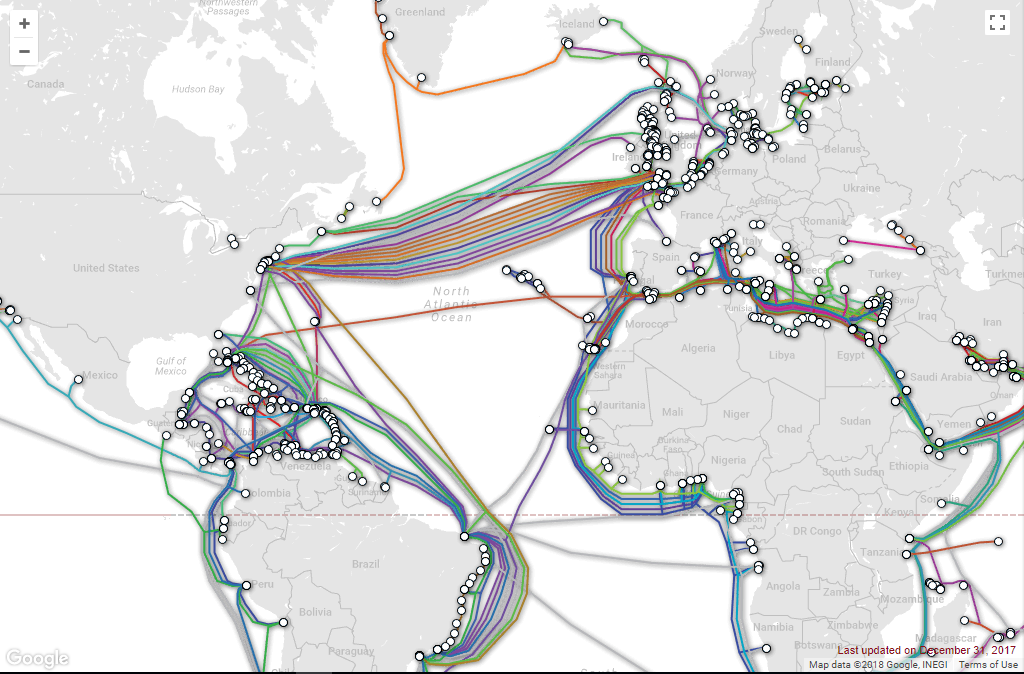 After opening that Telegraphy Map we can click any cable to highlight that cable and to see how this cable is connected with land different part of the world. It s also possible to click any city from map to see all the cables that are connected to it.