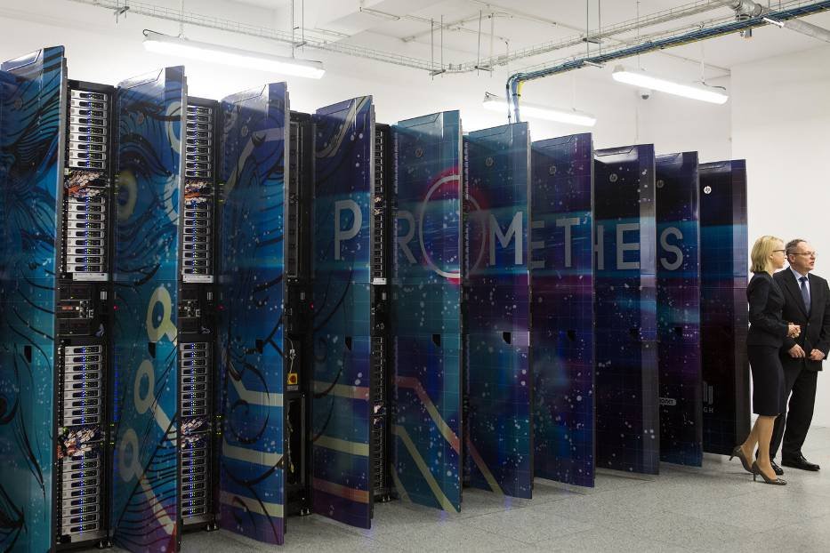 Prometheus is the fastest supercomputer in Polish history. It was launched in April 2015 and consists of over 2.2 thousand servers of the HP Apollo 8000 platform, connected with the superfast InfiniBand network of 56 Gbit/s throughput.