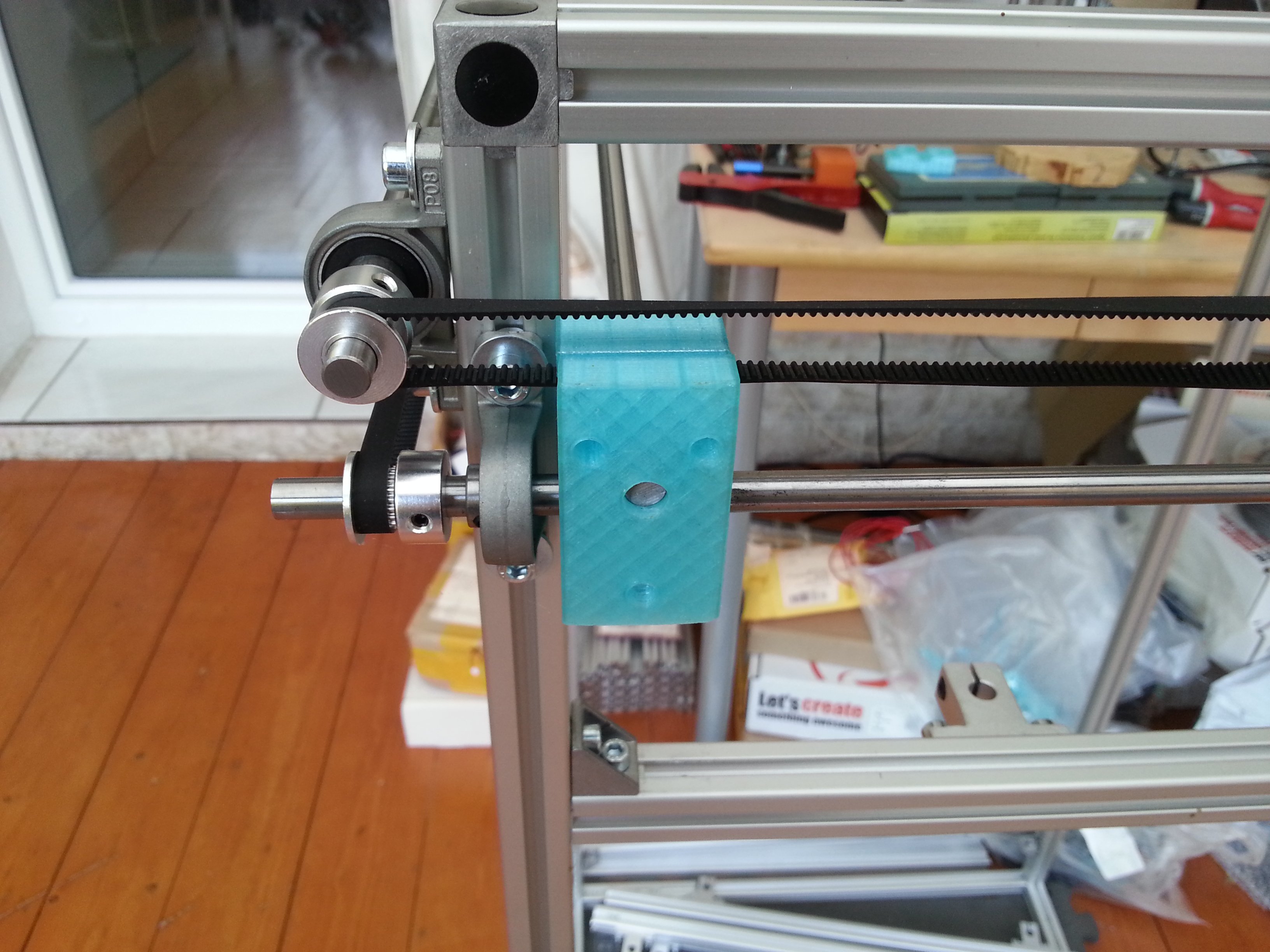 The other axis is just having the belt path on the top. The idea is the same, just a few differences on the distances and where are the holes to fix it.