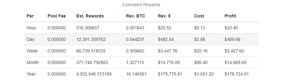I have been mining with the A3 for a little over a week now. Initially, the figures below were the expected earnings on the day that I purchased the unit.