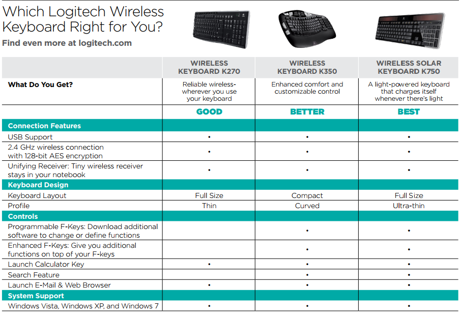 Specs-wise, this keyboard is similar to many keyboards of today. As you can see below from Logitech's site, It lists this keyboard as one of the Best products recommended for its features.