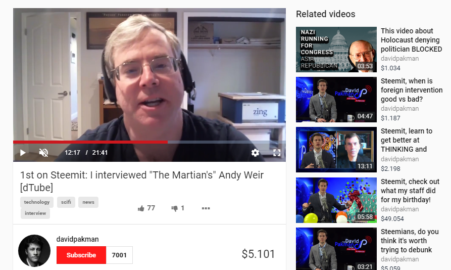I have been trying to interview Andy Weir, who wrote the great scifi book The Martian, which has since been turned into a movie featuring Matt Damon. He graciously agreed to an interview and I am posting it FIRST ON STEEMIT and dTube before my audience on other platforms gets to see it.