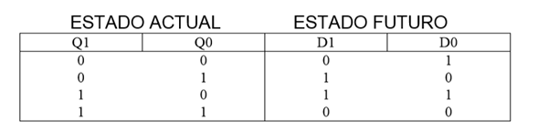 Para simular una máquina de estados finitos de tipo síncrona, cuyos estados posibles vienen dados por la siguiente tabla de estados: