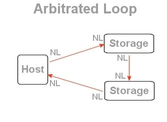 In the SAN with Arbitrated Loop topology data is transferred sequentially from node to node. To start transferring data transmission device initiates arbitration for the right to use the data environment.