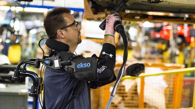 The Ekso Vest is the result of a collaboration between Ford and Ekso Bionics, to create an exoskeleton that would allow workers to use a considerable improvement in performance as it supports and enhances the upper body to prevent muscle wasting when operating with arms up and avoid muscular tensions.