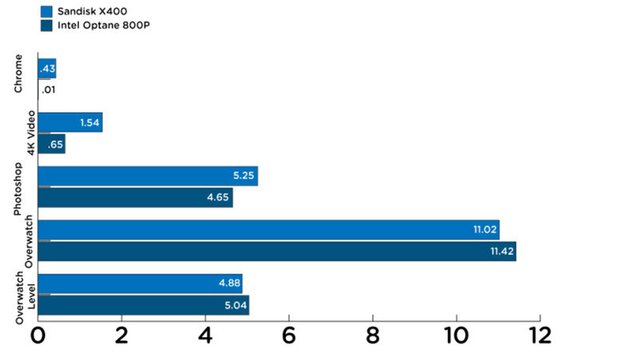 The big difference was that the Optane 800p faster by 3.52 seconds than the Sandisk x400 in launching the action RPG. This also has a difference of more than 5 seconds. Actually, much larger and more complex than games overwatched as games. In other words, it seems clear that the reality that the more powerful and complex tasks the Optane 800p's power is fully demonstrated!