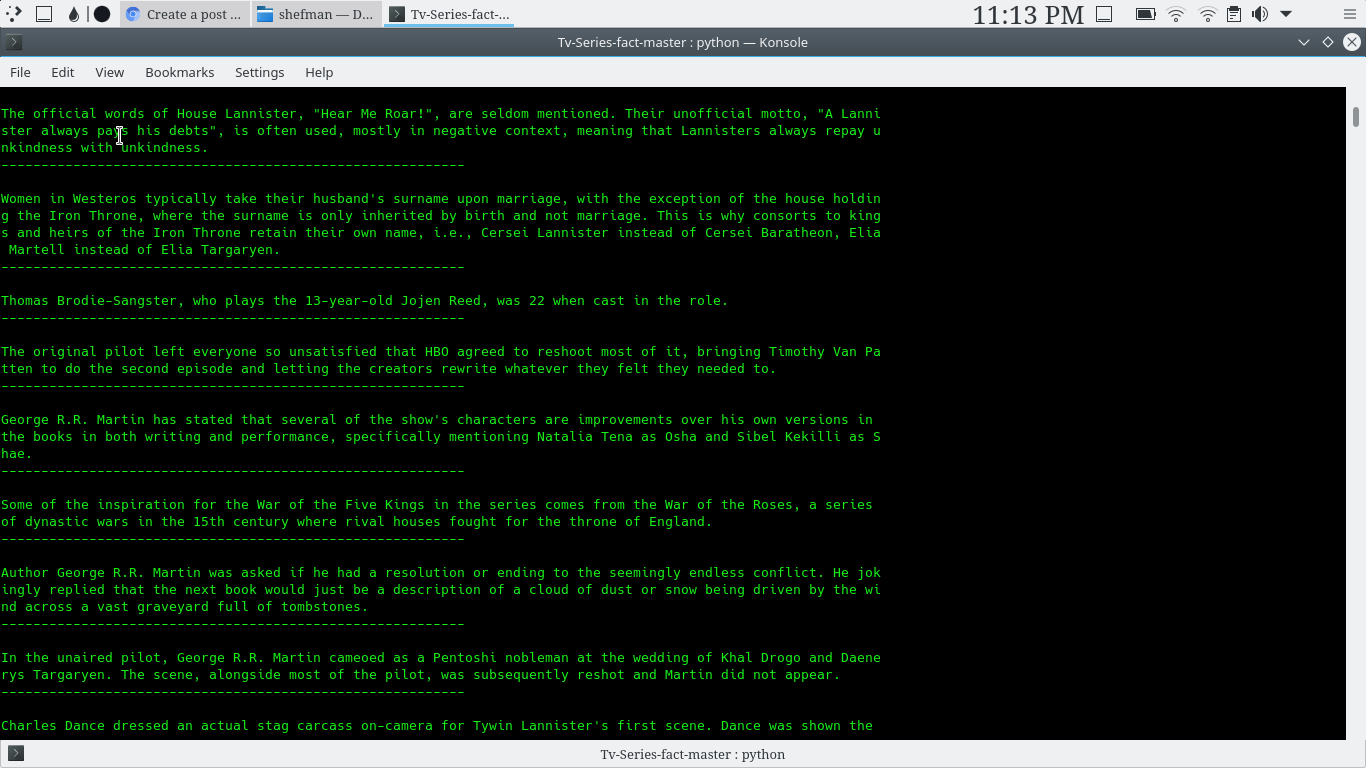 Here is a Script or Computer program that get fun facts/Trivial about Tv series