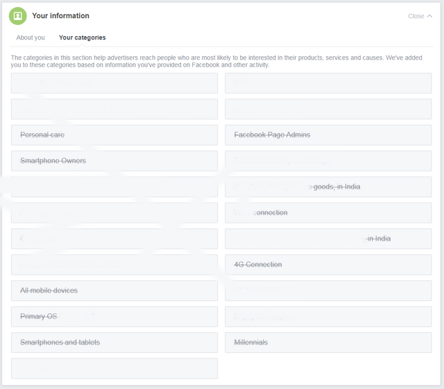 The images above show how much a user data is refined before collection. I've wiped out some data as it's something that I didn't want to share. Basically, all these data collected from users is supplied to advertisers for them to tailor the ads for each user. Phone numbers, email, age, gender, recent activity and much more! Take a look at your privacy and ad preference settings here and make an attempt at securing a bit of privacy online!