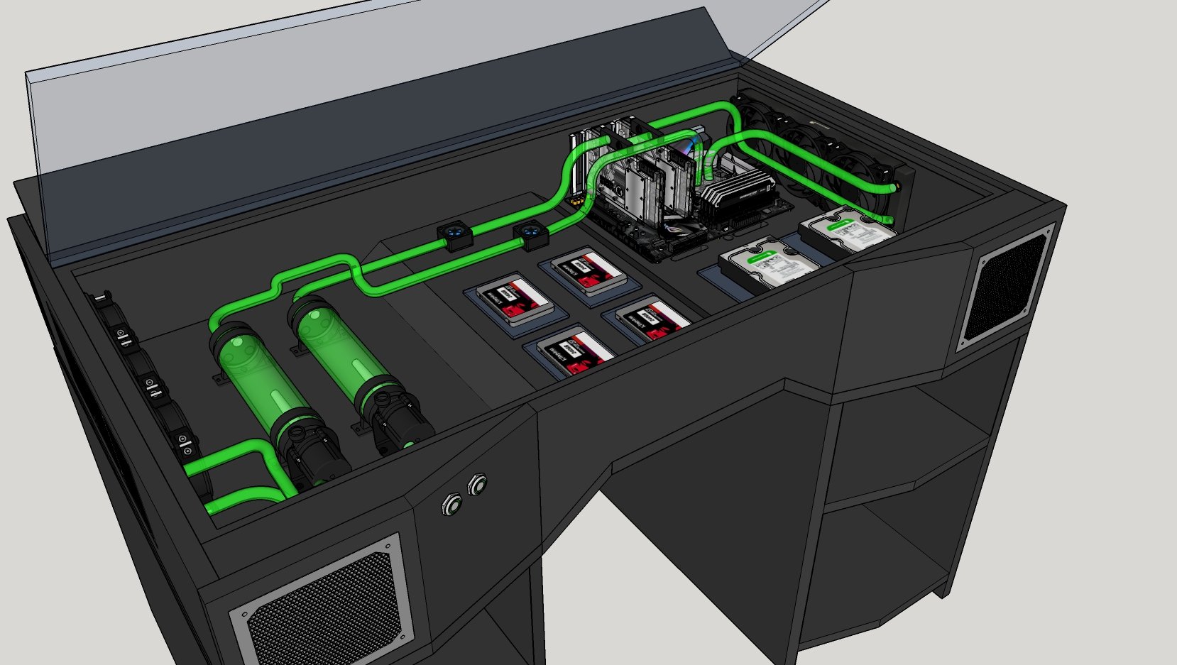 This is the final 3d render of the planned PC in a Desk Build I have been planning.