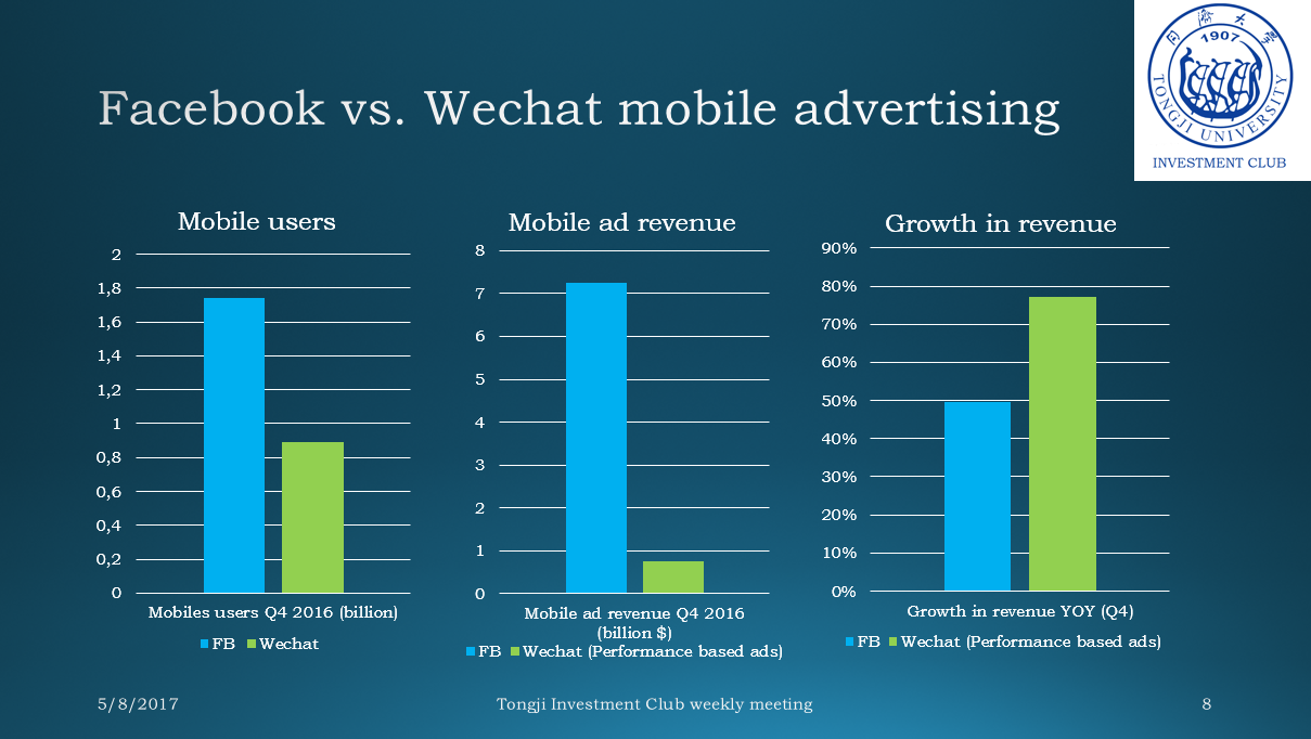 Facebook revenue per 1 mobile user = 4,17 $, Wechat =0,84 $