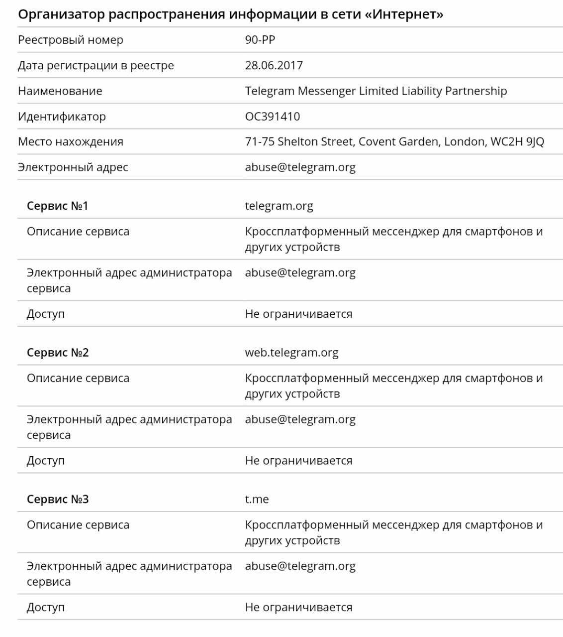 https://97-fz.rkn.gov.ru/organizer-dissemination/viewregistry/ (в поиске введите Telegram)
