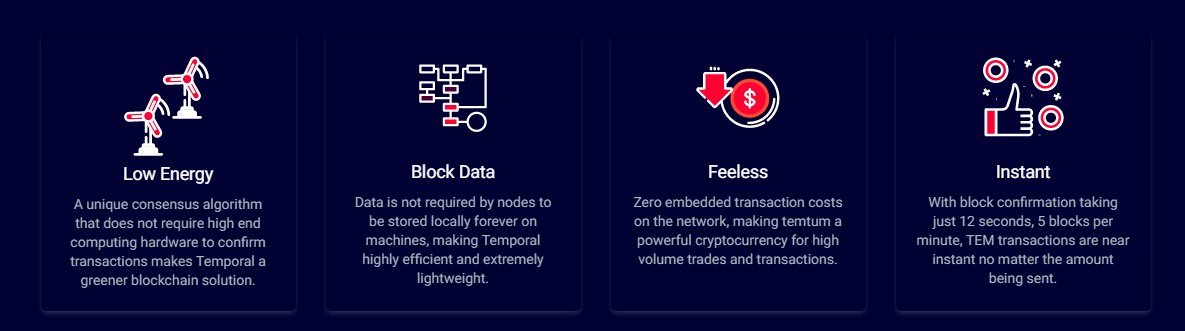There is the fact that existing blockchain networks have core limitations. In particular, they cannot meet the transaction requirements for many other industries and applications like big global and credit card companies. This is how temtum solves the problem of existing blockchain networks. So how does Temtum team do to solve those problem mentioned above? They invented a new blockchain called Temporal blockchain network which is: