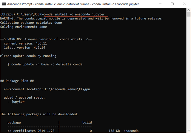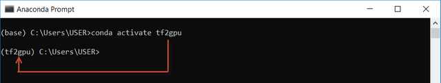 ทีนี้เราก็เข้าไปใน Environment ใหม่ที่พึ่งสร้าง (ผมตั้งชื่อไว้คือ "tf2gpu")
