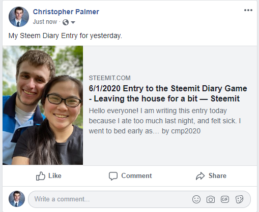 6/1/2020 Entry to the Steemit Diary Game - Leaving the house for a bit