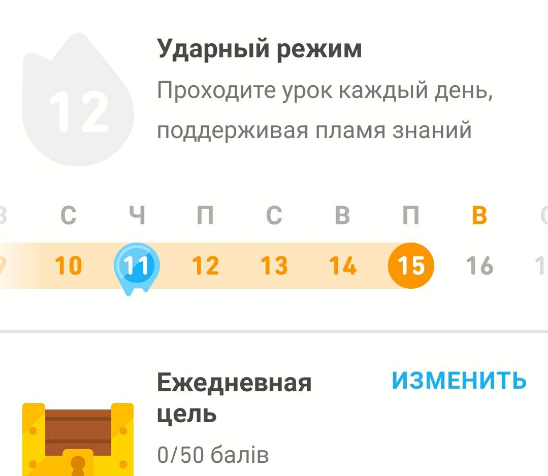 Уже ночью собравшись ложиться спать, взяв телефон в руки, увидел что ангийский мне напоминает что я могу потерять ударный темп - 11 дней подряд изучения английского. ААААААА