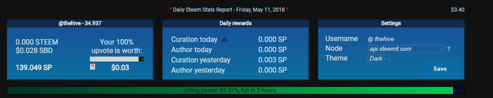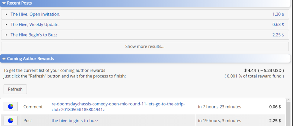 This piece I liked as soon as I seen it, Showing the breakdown of upcoming rewards. Listing both the posts and comments. It also has the feature of providing pie charts to your stats.