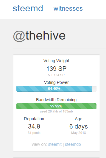 Your Steem Power available to vote with. This value combined with your voting Strength are used in calculations for the reward your vote will give. This amount can be seen using a vote calculator. (listed later in post) Your Bandwidth and Reputation are both seen here too. There is also an option to view the same stats with a greater breakdown on the Steemdb.com link.