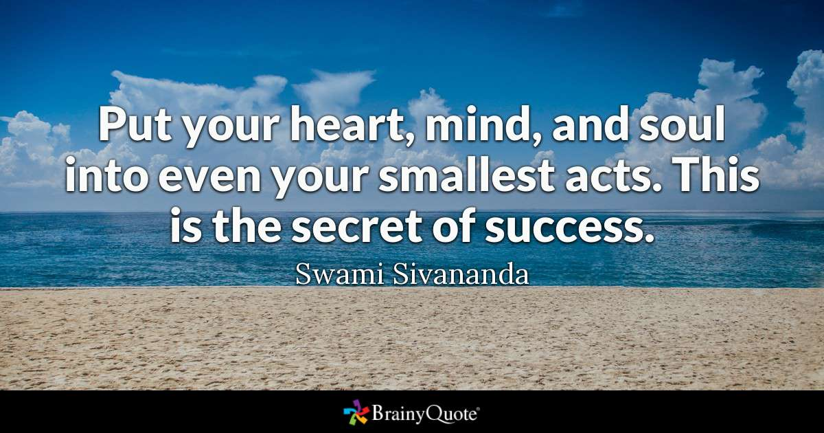 Put your heart, mind, and soul into even your smallest acts. This is the secret of success. - Swami Sivananda
