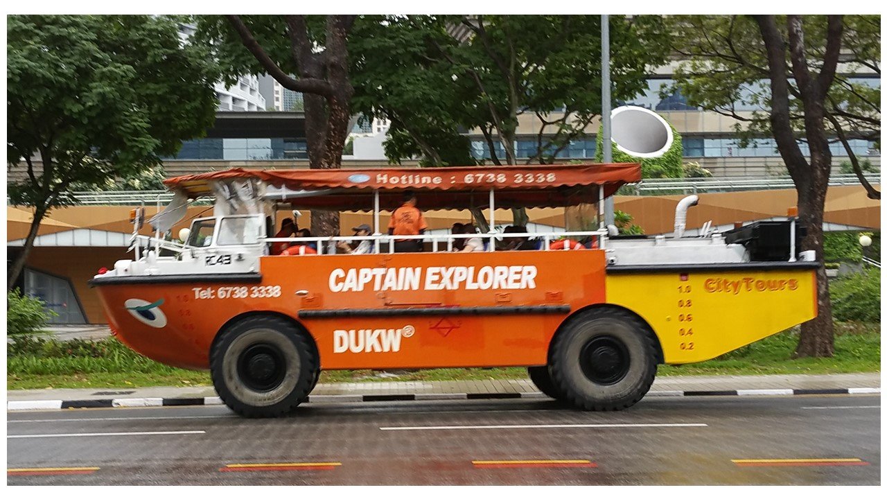 Every time I see one of the amphibious one drives by, it always make me smile with a funny kind of feeling. How does a modern city like Singapore get these massive monster on the road. We have been told we are a land scarce nation; cannot have too many roads and cannot have too many cars. Yet we have this massive “Monster Duck?” on the road. My impression of amphibious vehicles are like the ones you see in the movies for marine to land assault.