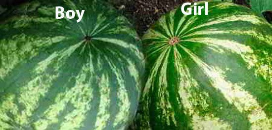 A Girl-watermelon has a flatter "butt" and a spot in the middle is bigger. A boy - watermelon has more raised "butt", the middle is deepened and the spot is less. And they say girls - watermelons are sweeter and have less seeds.