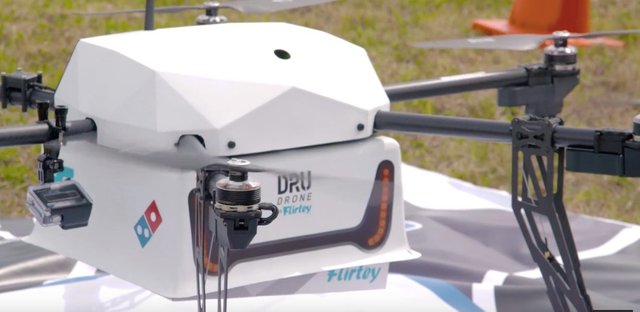Last month Domino's delivered the first two pizzas by a drone to a couple in Whangaparaoa, New Zealand. This was done using the companies new "DomiCopter" that travels at 18 mph within a one mile radius and takes at most 10 minutes to arrive. Upon arrival the drone slowly lowers your dinner into your yard using a cable attachment.