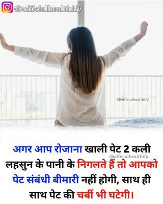 अगर आप रोजाना खाली पेट 2 कली @ffhalthfy लहसुन के पानी के निगलते हैं तो आपको पेट संबंधी बीमारी नहीं होगी, साथ ही साथ पेट की चर्बी भी घटेगी|'."