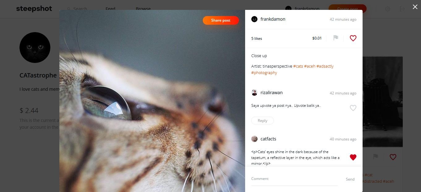 So, here you can see that on Steepshot there's a single photo of a cat, right?