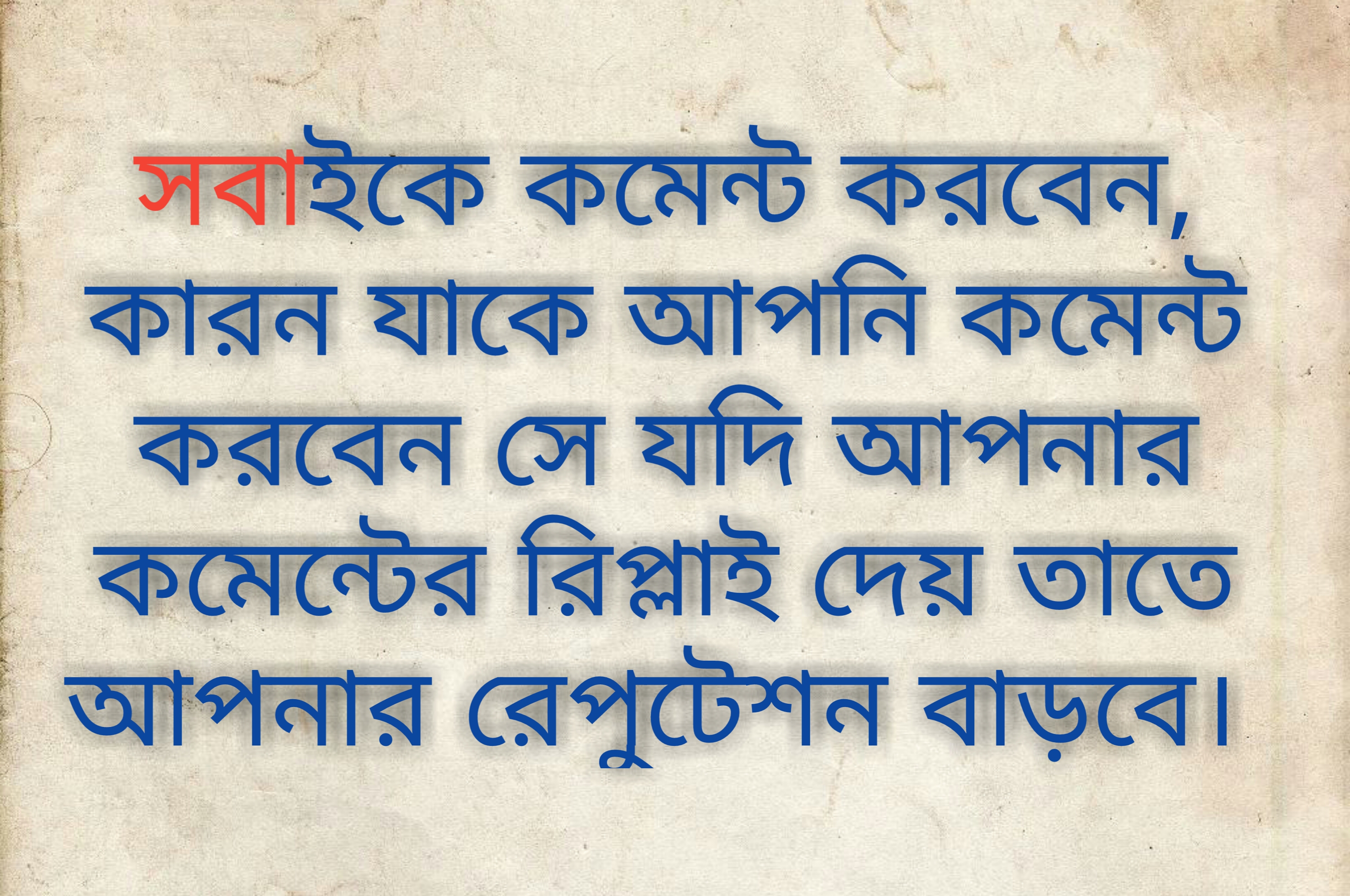 সবাইকে কমেন্ট করবেন, কারন যাকে আপনি কমেন্ট করবেন সে যদি আপনার কমেন্টের রিপ্লাই দেয় তাতে আপনার রেপুটেশন বাড়বে।