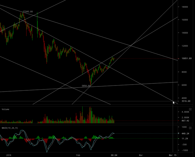 As predicted, today is likely a turning point and next week the declines may begin with target for the low potentially in the week that begins March 12 (see chart below). If DJIA fails to close above 25,500 today, then retest of lows is likely. So then BTC would be expected to break down out of the ascending wedge and retest $5850 lows or crash through to $3505. Because of the strong bounce this week, I no longer think $1275 is plausible. We're climbing a Wall of Worry of uncertainty, but the fundamentals are still bullish. This is not a crypto winter. At worst a SLINGSHOT crash or maybe only a choppy correction with bottom behind us. Yet my odds still favor the SLINGSHOT move down to $3505 with a V bottom rebound.