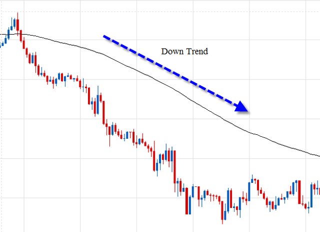 Now when trend is going down, then the price bars are below moving averages and line is angeling down