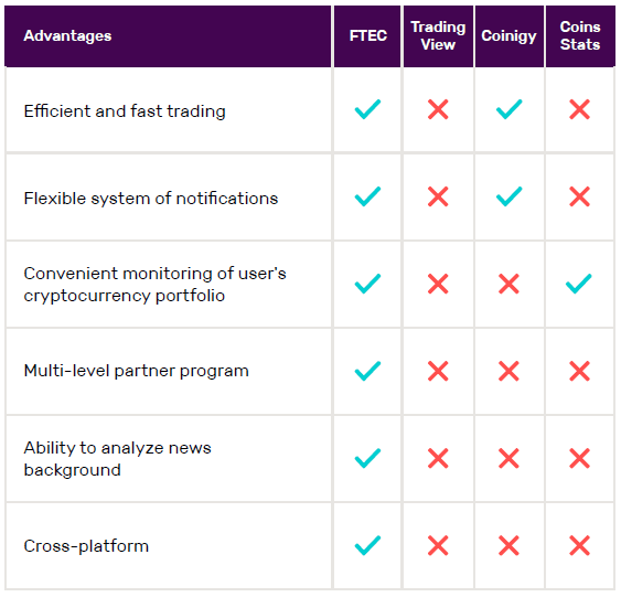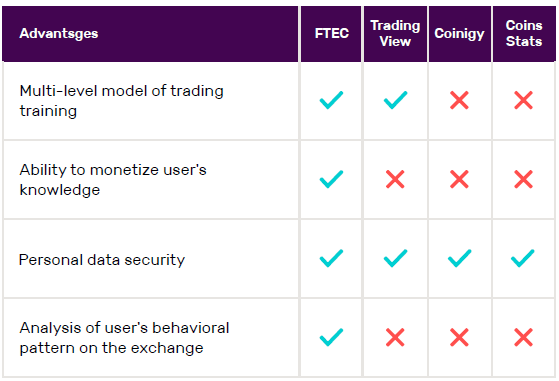 Thus, the FTEC project is one of the most promising and conceptualized projects to build an ecosytem of artificial intelligence and neural networks to conduct effective trading activities for the cryptocurrency markets and offering solutions for: -