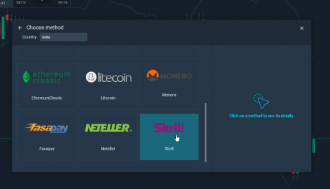 For live accounts, choose your country first, and then pick the Skrill payment option. The Skrill transfers are instant, so the money you deposit should be available for trading immediately.