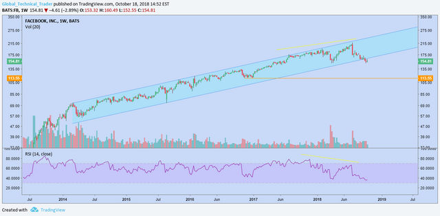 Yesterday I took a look at GOOGL to look for clues as to the future direction of the broader market. Today it's Facebook's turn.