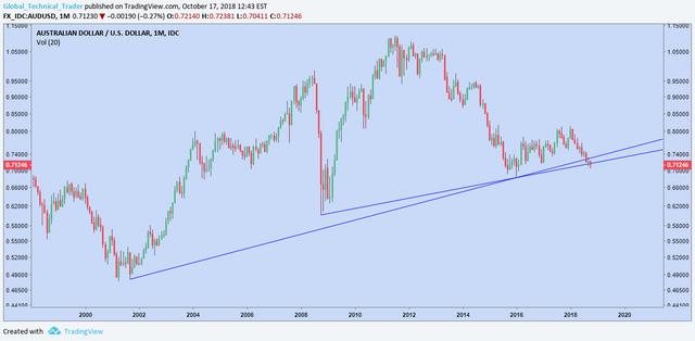 The montly chart on this forex cross, at this stage, does not paint a pretty picture. Whilst I'm looking for USD weakness here, Aussie and Kiwi Dollar have been laggards among the majors and look to be marching to their own beat. The only saving grace at the moment is that the daily chart shows each low hasn't yet been met by momentum confirmation, by way of RSI hitting <30.