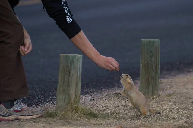 The sign said don't feed the Prairie dogs, it wasn't specific about pretending to