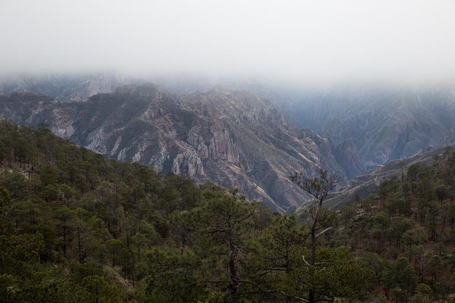 We made for lower ground to get below the cloud and enjoy the canyon scenery from the walkway between the Divisadero train station and the Parque Aventura Barrancas del Cobre.