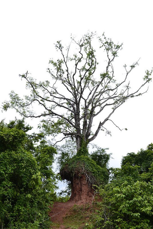 This tree grows on a small hill and is very close to the street. The land where the tree plugging his roots left only a little. Maybe, someone has been to dredge the hill without thinking impact than the work he did. Land on the hill always eroded by the rain and one day the tree would fall by itself into the street, and will be very dangerous for people who passed on this way.