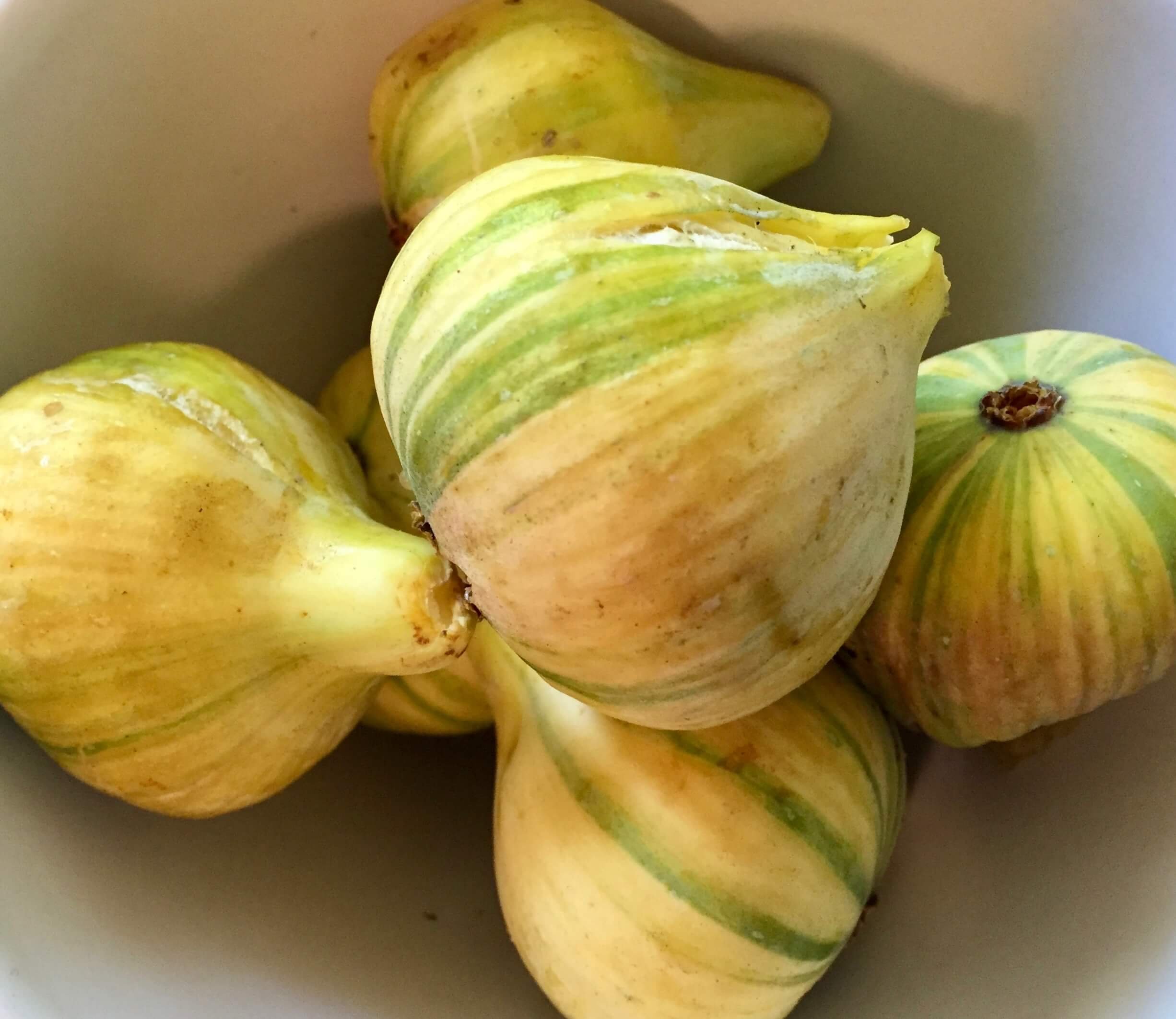 Love my figs my mum has a fig tree which produces black purpleish figs and when it's time for the figs to start ripping i cover the tree with netted orange and red onion bags tired together to form a huge parachute and throw it over the fig tree and that keeps all the critters away i love my figs and the critters are not fair they want them all :))