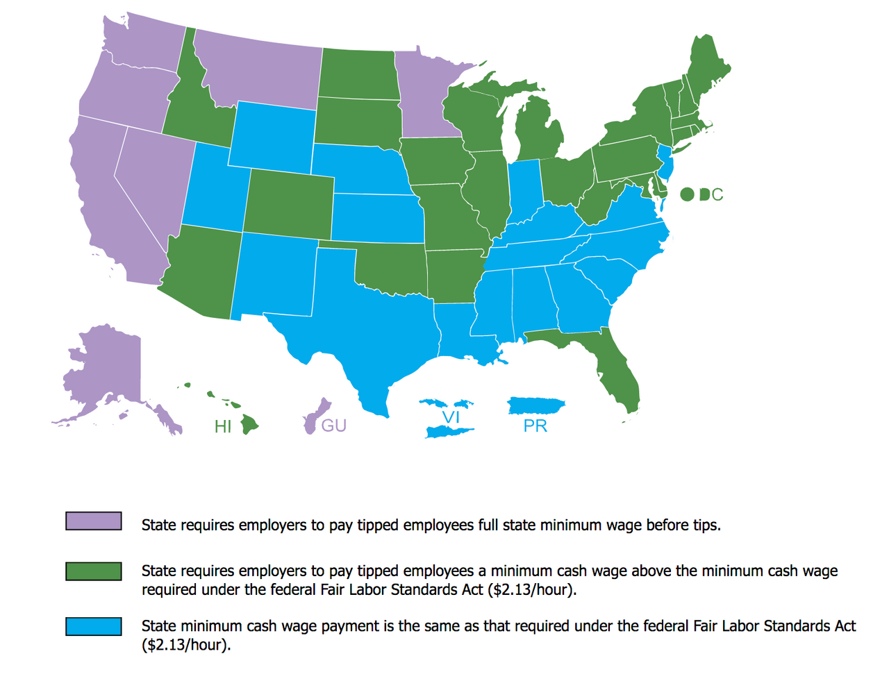 Before we get into that, it's important to remember that servers in many instances earn the majority of their income from tips. The federal Fair Labor Standards Act allows restaurants in certain states to pay tipped employees less than minimum wage. In New Jersey, for example, a restaurant can pay a server as little as $2.13 an hour.